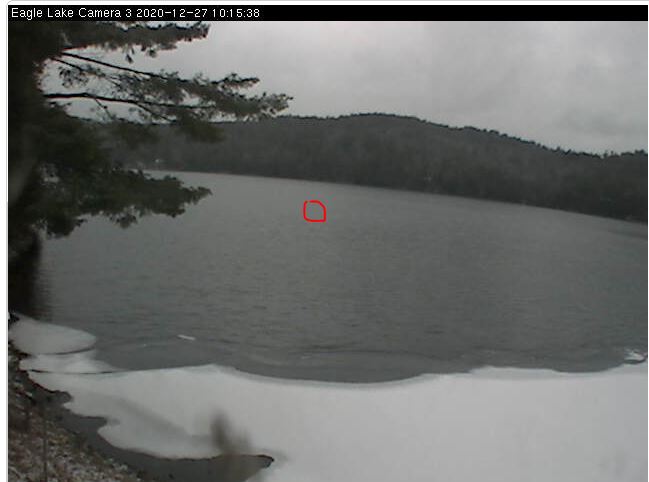 First ice on Eagle Lake looking east towards Conklin's Island with Ti Bay in the distance.