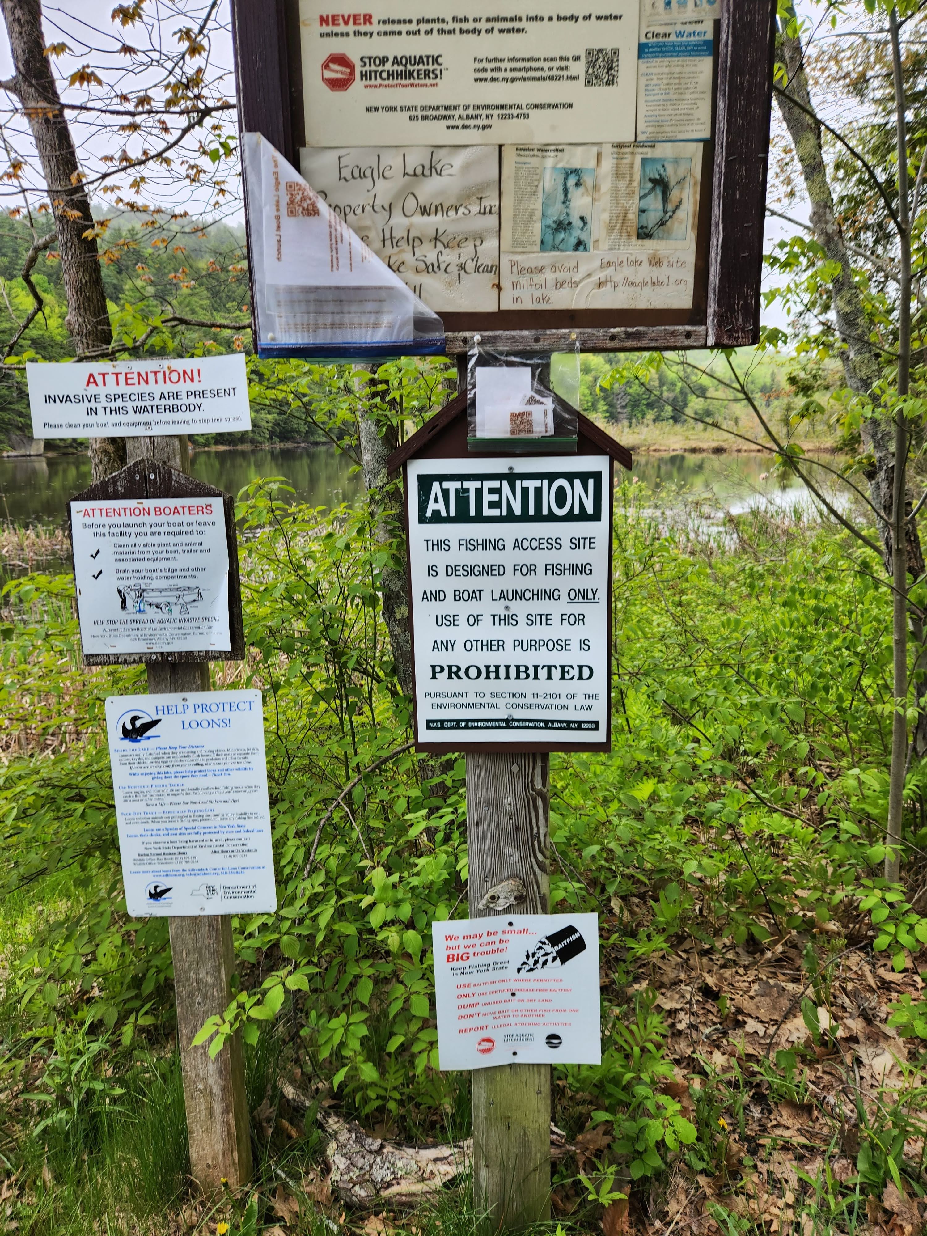 This is a collection of images taken by Chris Hyde of signage located at the Eagle Lake Boat Launch.